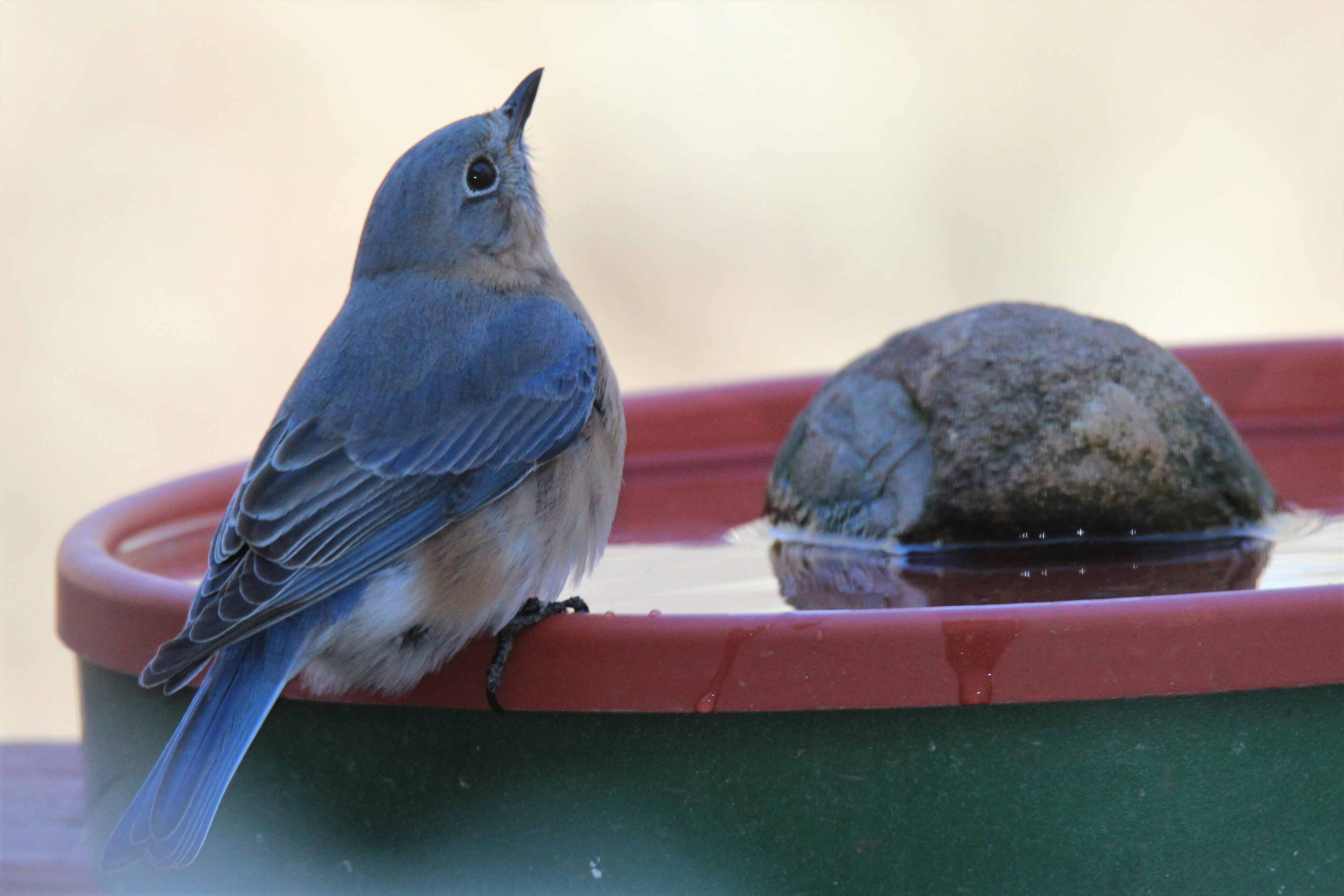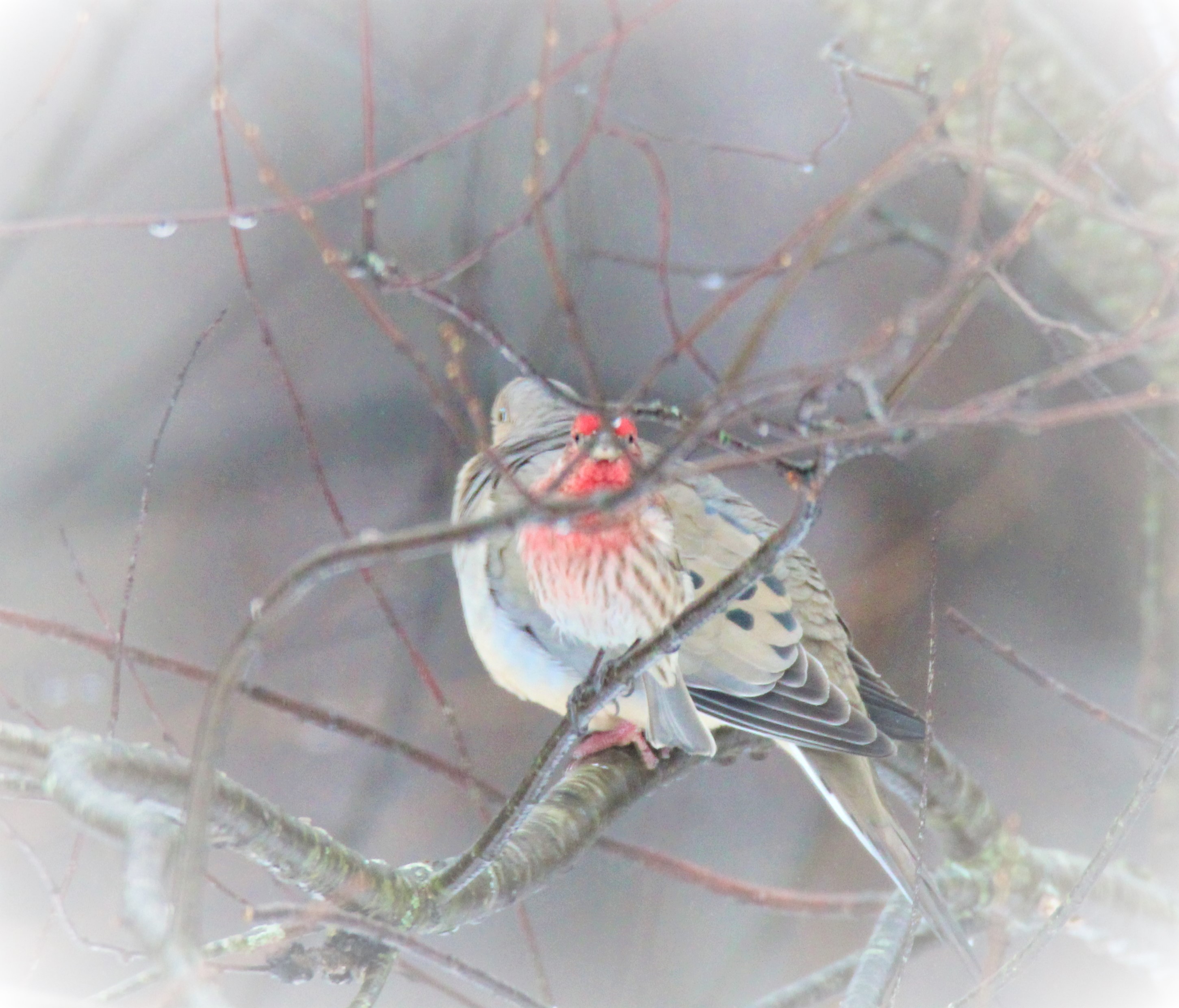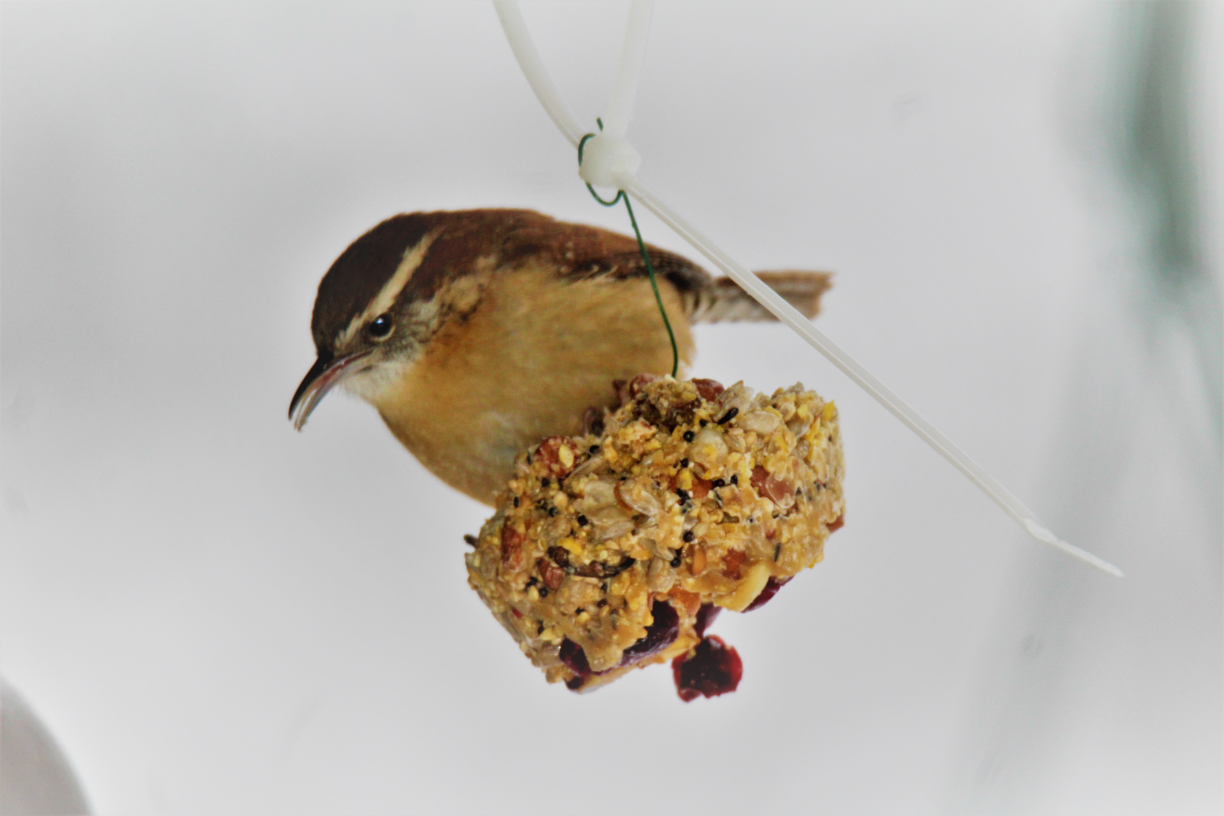 How can we help our feathered friends to make it through the bitter cold? Well, they need a LOT of food to keep their metabolism going to create heat and energy. The natural bugs etc. we see the Downy Woodpecker foraging for below are gone now. So, we can feed them. Being a crazy bird lady myself, my birds have quite the set-up going on. I have like 5 different feeders plus I made homemade suet for them. The Carolina Wren below actually appreciates my cooking LOL! Different birds like different types of foods, though most will eat any kind in a pinch. Birds also need water to survive. My heated birdbath needs refilling daily as so many birds visit it daily, such as the Eastern Bluebird you see here. I cannot even imagine swimming in the ice-rimmed waters now as I see ducks and geese do. But even our backyard birds brave the ice as you see the Mourning Dove below doing. And, many birds still bathe now if given the chance. I watched 2 Tufted Titmice take a bath yesterday! They need to keep their feathers clean and dry to keep the heat inside them.