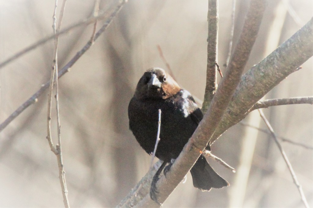 The Rusty Blackbird has a sweet and melodious call. I taped this audio April 1st in Fannie Stebbins in Longmeadow. You will hear his call in contrast to 2 other common black birds that have arrived about a month ago-the Common Grackle and the Red-winged Blackbirds. The Fish Crow arrived recently and I instantly identified his nasal sounding, hoarse call in my yard April 2nd. I had no phone, so this audio is from my yard last June. You can hear him starting at 9 seconds. The Brown-headed Cowbirds are here to do their thing. They have lots of sounds, but the easiest to identify is a high-pitched squeal or whistle sound. The audio below is from yesterday and they call a few different times. They like to knock out other birds’ eggs out of their nests and lay a cowbird egg there so that a different species will raise their young.