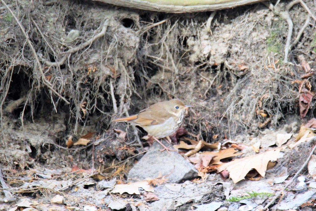 Our American Robin and Eastern Bluebirds are thrushes. You can see some other thrushes that are returning now. These birds are somewhat shy and prefer denser shrubs and thickets near water. You might hear the Wood Thrush’s beautiful song even if you can’t see him. You might also see or hear a Hermit Thrush, a Swainson’s Thrush, or a rare Gray-cheeked Thrush. A Veery is a thrush and these birds a bit friendlier so you may find them easier. They sound a lot like Tufted Titmice to me. There is also a Brown Thrasher that resembles a thrush to me but is more closely related to our Gray Catbirds and Northern Mockingbirds that are everywhere now!