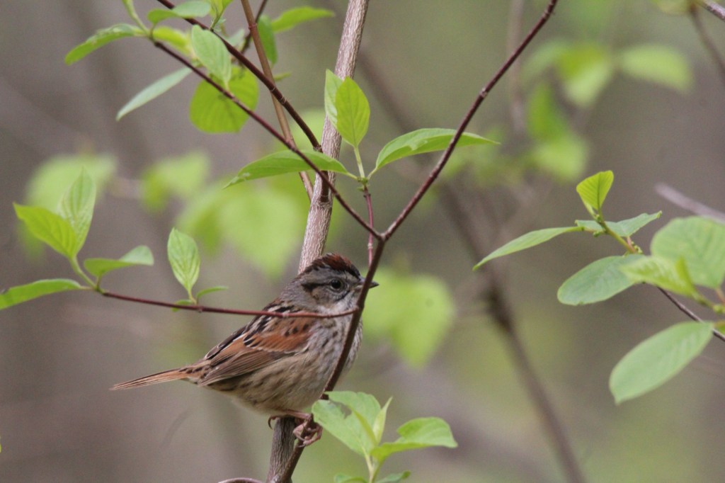 When people hear the word sparrow, they typically think of the (English) House Sparrow or the Song Sparrow as they are both common year-round in our area. There are many other sparrows that migrate. I have had the White-throated Sparrows since the winter. They are becoming scarce now. I have Chipping Sparrows building a nest in my yard now. You might see some newer some spring sparrows now, such as the Savannah, Grasshopper, Field, or Swamp Sparrows. Their names give clues to their preferred breeding habitats. Some rare sparrows are the White-crowned, Lincoln’s and Vesper Sparrows. Most of us said goodbye to our Juncos.