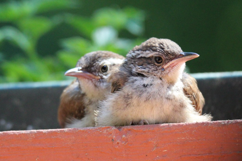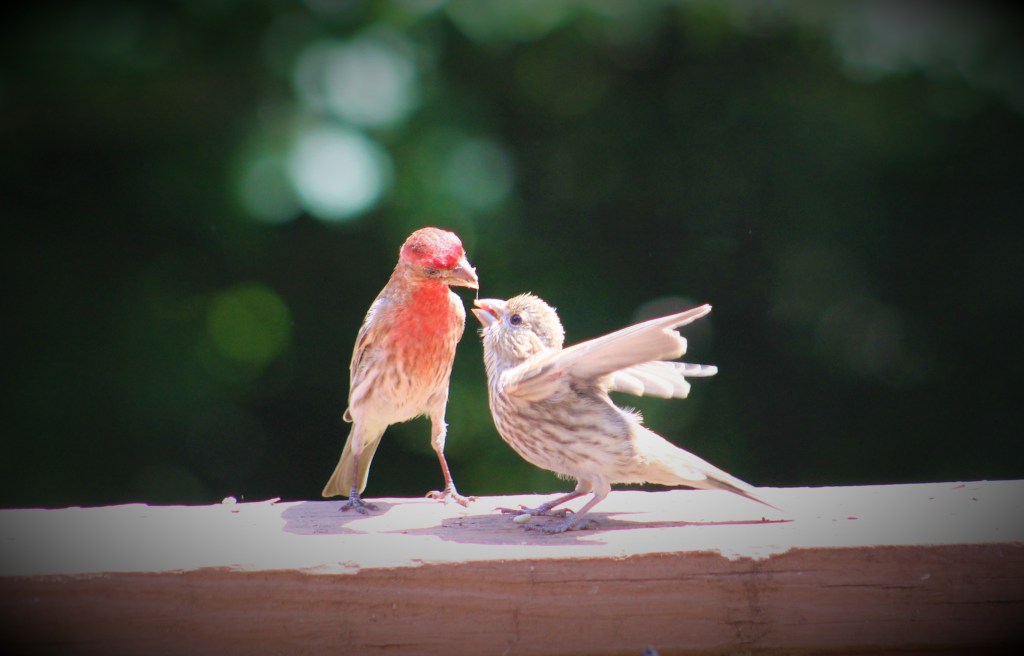 Hi everybody! I am so excited to see all my baby birds and fledglings! I am amazed at just how many different birds are raising their families in my yard! I also get to see lots of nestlings and fledglings when I go bird watching. If you read my “I am Going to Have Grand Feather Babies blog” or my Valentine post about mating birds, you learned that many birds will have more than one brood, or clutch (batches of babies basically). I am still seeing LOTS of courting and nesting behaviors going on in my yard alongside the parents raising their babies, such as male Chickadees and Mourning Doves are serenading the ladies. If you missed the posts, you could read them now to see how you can help the birds by providing nesting materials and safe spaces to build the nests.