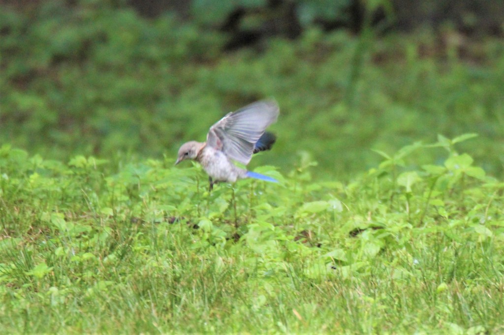 I am beside myself with joy. They chose the old house that I tacked some fishing line to as it scares of House Sparrows. The pair spent 2 weeks or so flying in an out of the house. Now, I see mom and dad carrying the mealworms in. Yesterday, I heard the babies and my heart melted. My blues are very diligent. They are almost always either feeding the babies or standing guard in the nearby tree or on my shepherd’s hooks near their babies’ house. They swoop down on any bird or squirrel that gets close. They are even protective of the mealworm feeder now. I would love to open the house to see them and share a picture with you, but I don’t want to stress mom and dad out any more than they are. I am working on trying to get audio to post LOL. Hopefully, you will see my Bluebird Fledglings soon!