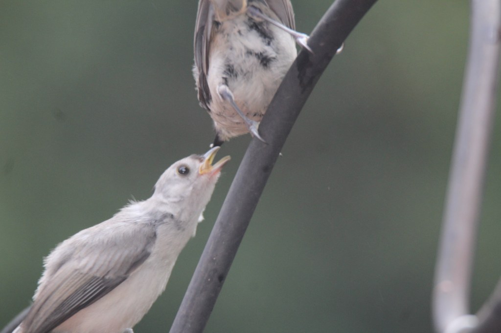 As I was completing my eBird reports this week, I realized that almost every species had fledglings or feeding young as codes on the reports! You can see my reports by clicking link on Robin’s Nest page. Recently, I have seen Hairy and Downy Woodpeckers, Blue Jays, Gray Catbirds, Chipping Sparrows, European Starlings, and American Robins feeding their babies. (See TikTok and Instagram for videos.) I was also privileged to see a mom and dad Great Blue Heron working together to feed their babies at Fannie Stebbins in Longmeadow-SO sweet! (Check Longmeadow page.) I have Chickadee, Titmice, Catbird, House Finch, Robin, Cardinal, Blue Jay, Carolina Wren, and White-breasted Nuthatch fledglings coming to my feeders now. And these are just the ones that I am seeing in my yard! Imagine how many more there are in our local area!