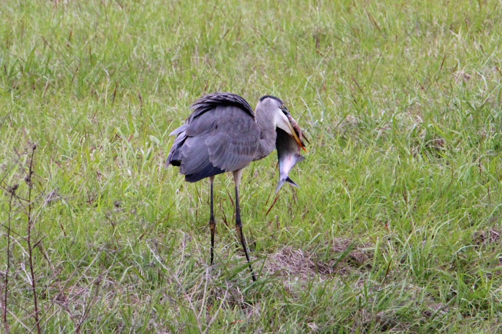 My husband and I went to Lakeside Ranch Stormwater Treatment Area in Okeechobee. I saw another 2 more lifers. There were 8 Gray-headed Swamphens nesting in the long marshy grass. They have such beautiful colors. I also think I saw my White-tailed Kite but am waiting on verification. I saw some beautiful Caspian Terns fly over searching for lunch. Many herons were hunting at my level. I caught a Great Blue Heron catching a huge fish! I don’t even know how he can swallow it! I saw my first Belted Kingfishers of 2023. I heard a Mallard which is rare here. I also heard Purple Gallinules but couldn’t see them in the reeds. We had a close-up encounter with a few alligators lazing in the sun. I was amazed by how close the birds got to them. We saw 10 alligators in a half-mile stretch!