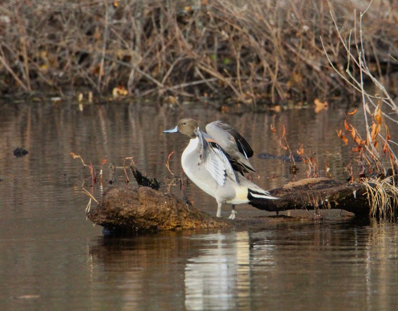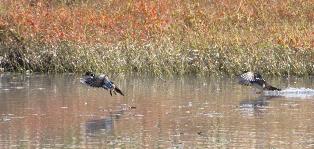I saw some cool RARE birds this fall too! Sandhill Cranes, Little Blue Herons and Bonaparte’s Gulls are NOT rare in my Florida neighborhood. (You can see many photos of them in My Trips blogs.) But it WAS rare to see a Little Blue Heron visiting the sandbar near Fannie, a Sandhill Crane FAMILY in the field near Arcadia Wildlife Sanctuary in Northampton, and a Bonaparte’s Gull in the Quabbin Reservoir! I saw a rare Buff-breasted Sandpiper and a Red Phalarope in the Fannie flats. I think my favorite local sighting was the pair of Bobolinks I saw there too. I have heard them before, but they usually stay hidden in tall grassy fields, so I was amazed when they practically posed for me! Three Pink-footed Geese caused quite the stir in a UMASS pond. Of COURSE, I rushed there and braved the parking situation to get some photos! A Tufted Duck is STILL drawing birders to Whiting Street Reservoir!