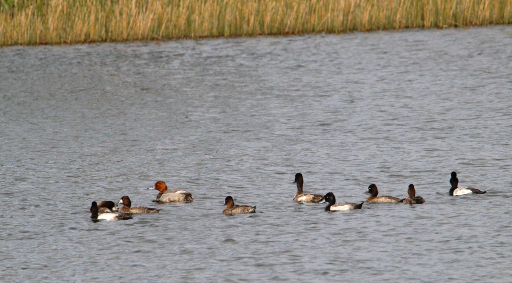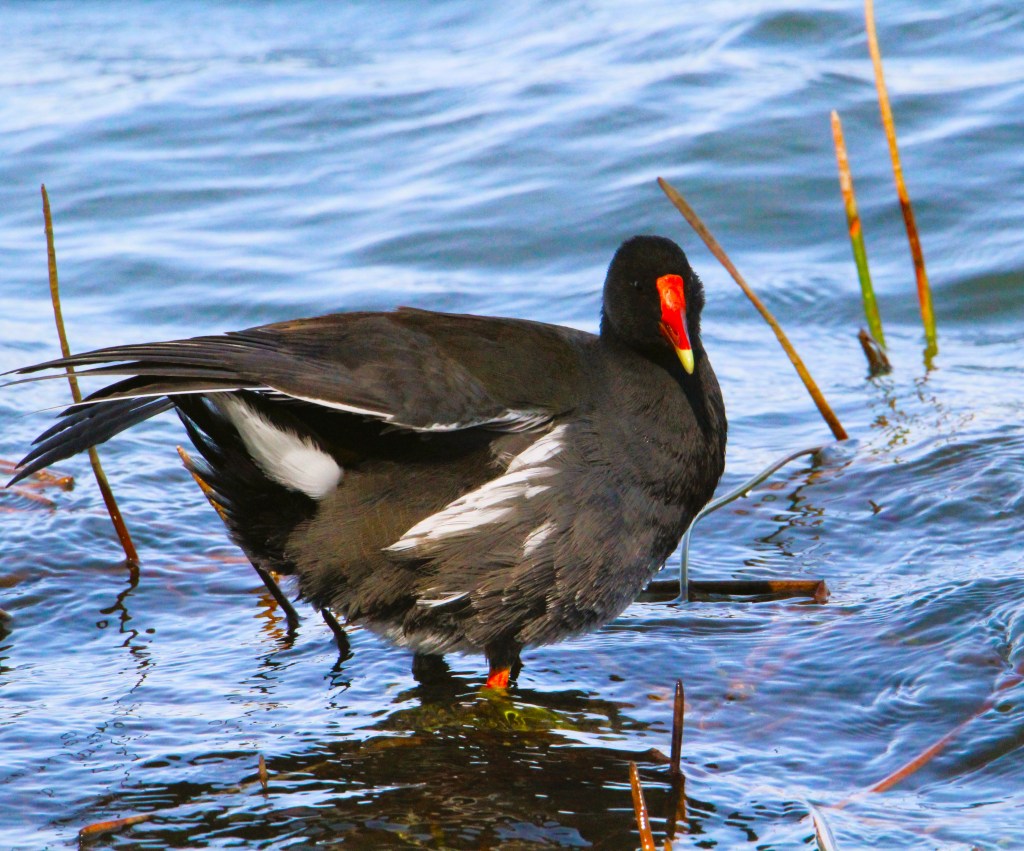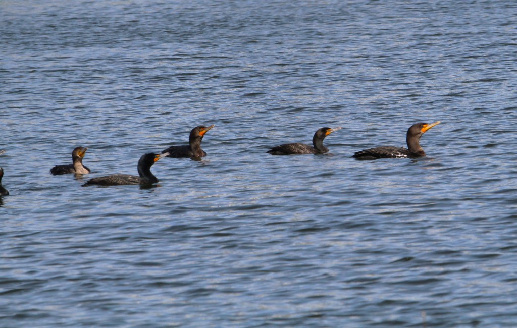 I discovered a new lake near my community’s front gate that is the perfect walking distance from my house. It has been full of both waterfowl and wading birds. I have shared lots of videos from here on my social media sites. I always see Osprey hunting there, and some occasional hawks. I enjoy seeing the adorable Loggerhead Shrikes perching on signs near the water. I also love watching the Ring-necked Ducks diving in procession! There is a huge influx of Lesser Scaup this year. I see HUNDREDS swimming there daily. There are a few Greater Scaup mixed with the Lessers, and many Coots and Gallinules. A wild Muscovy Duck has been there for over a week now and I saw my first Redheads last week- a lifer! I also birded the Tradition Lake, the only place I needed a car for. It is a very large lake in the center of town. I saw many of the same birds here, including a playful group of Double-crested Cormorants. An Anhinga and Common Gallinule posed for me!