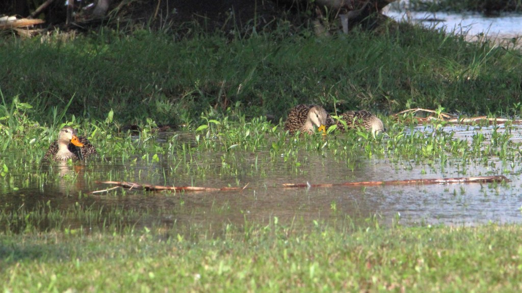 I like to bird through my neighborhood. I pass many lakes on my way to the huge lake near my clubhouse in Vitalia. I lug my camera everywhere, so I won’t miss a shot. The lake has all the birds that I mentioned above and more. There are always large groups of Glossy Ibis and Black-bellied Whistling Ducks. Common Gallinules, Mottled Ducks and American Coots call this lake home. The trees are filled with different dove species, including White-winged, Common Ground, Mourning and Eurasian Collared-doves. Friendly little Blue-gray Gnatcatchers always greet me there. The preserve across the street from the clubhouse is a bird-magnet, especially as dusk nears. I have seen lots of American Wigeons and Blue-winged Teals there lately.