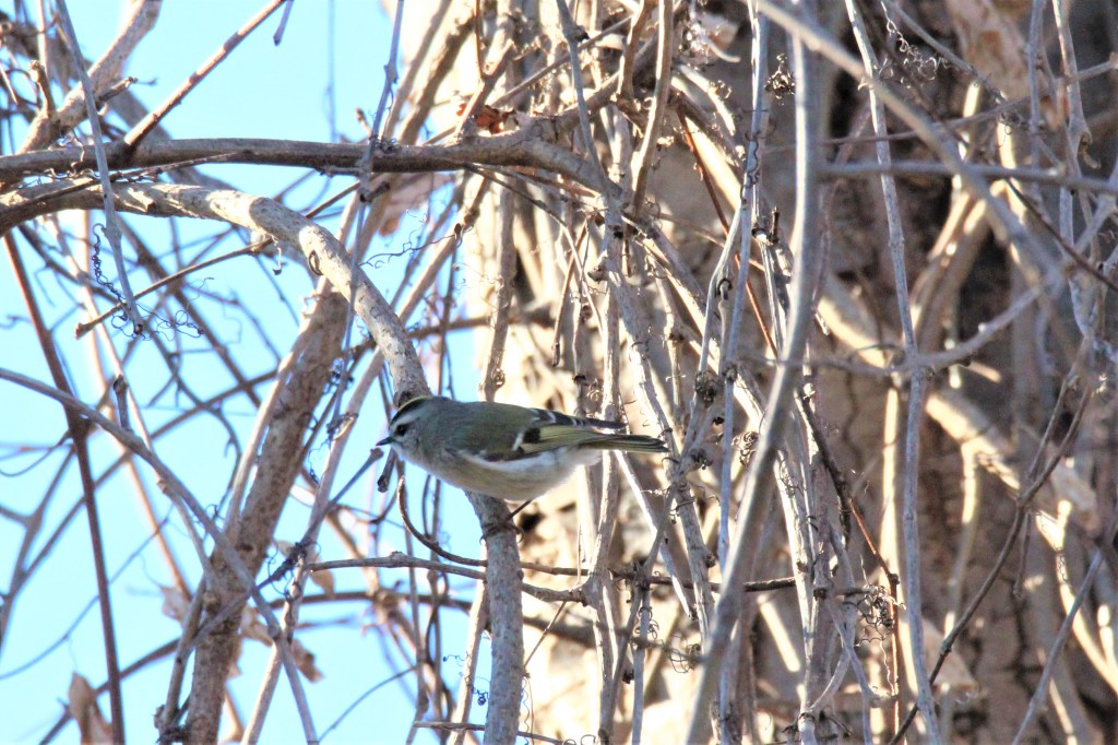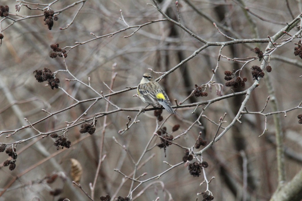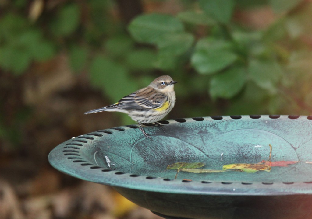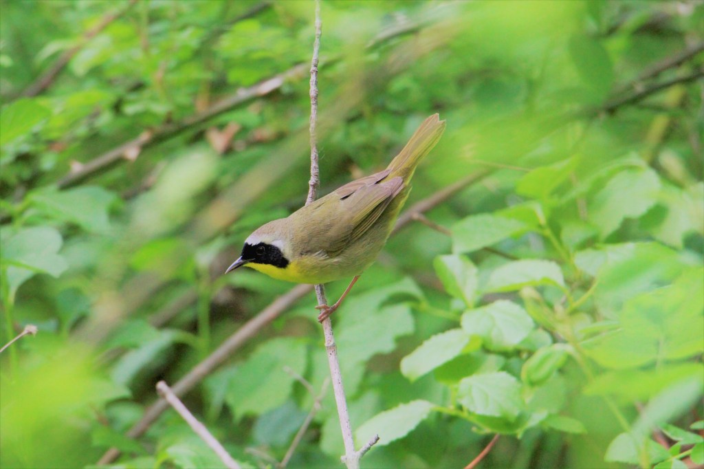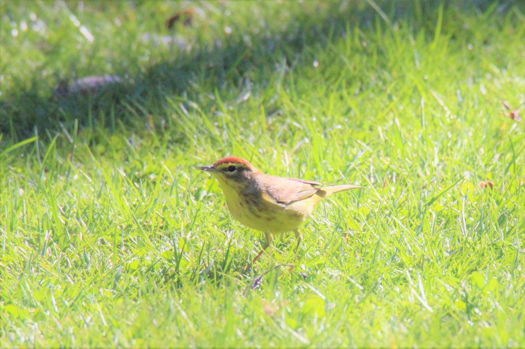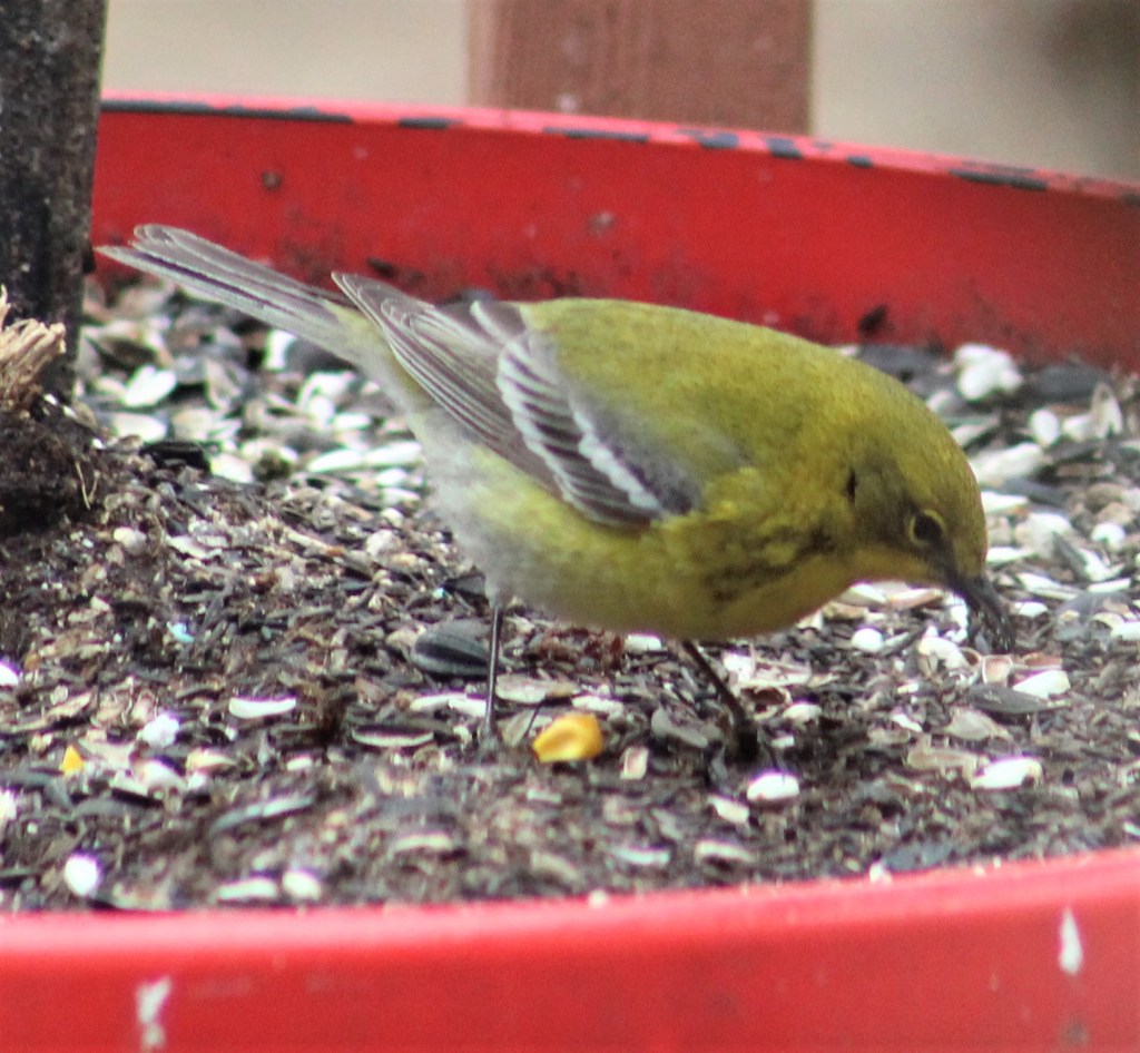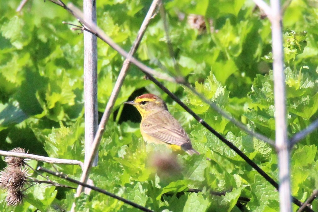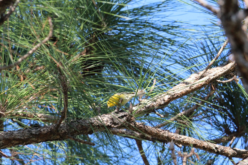 Finally, how is my bird behaving? Warblers are notorious for creating challenges for poor people like me who only want to take their pictures! They are constantly flitting about near the tops of trees. Kinglets zoom around too but will rest and are often found lower in trees and even in shrubs. Vireos will rest in lower tree branches and Common Yellowthroats like thicket and shrubs. Goldfinches zig zag up and down through the air and will perch for long stretches. They will also visit your birdfeeders often to eat thistle and seeds. Pine Warblers and Yellow-rumped Warblers will visit feeders rarely too! Yellow-rumped and Palm Warblers will feed on the ground too which makes for easier viewing. Most warblers are shy though. I usually look for movement and then try to home in on what is moving.