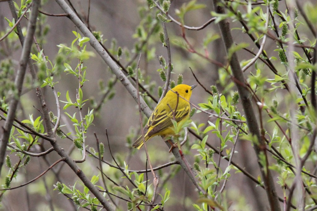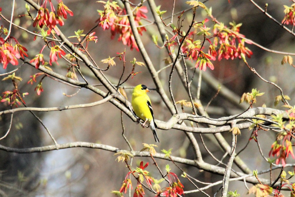 Spring migration in Western Mass is so much fun for bird-lovers! It is so interesting to see how the numbers of migrating birds are fluctuating this week. According to Cornell’s Migration Dashboard, 579,300 birds crossed into Hampden County on Tuesday night (April 24, 2024), but no birds came here on Wednesday. They were all in Texas! 3,942, 900 birds moved through Anderson County in Texas Wednesday and over 4 million passed through last night! Crazy! I clearly NEED to go there to bird! 26,500 birds arrived here last night. Interestingly, both states had 14 species. We birders in Massachusetts are seeing lots of yellow birds now. I see many people posting about how their American Goldfinches have arrived. Most Goldfinches are year-round birds in our local area. You can learn all about goldfinches in my earlier blogs. For now, I thought it might be neat to help you identify some of the yellow birds you could be seeing this week! I use location, and time of year, appearance, sounds, and behaviors to help me figure out which yellow birds are in my backyard and local birding spots now.