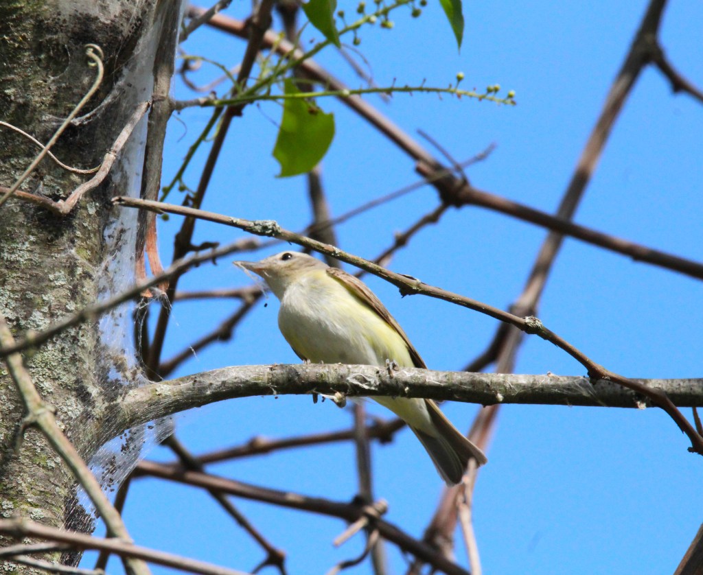 Here is where sound helps too. Many times, I will hear a bird before I see it. I heard the Yellow Warbler below and watched for movement near the sound to get a photo. Too often, I hear a bird and can’t find it, which is frustrating. Merlin, the bird ID app is a valuable tool to help you find and ID the birds you are seeing and hearing. You must be careful though because it provides suggestions. It is up to you to use all the clues we talked about above to ID your bird correctly.