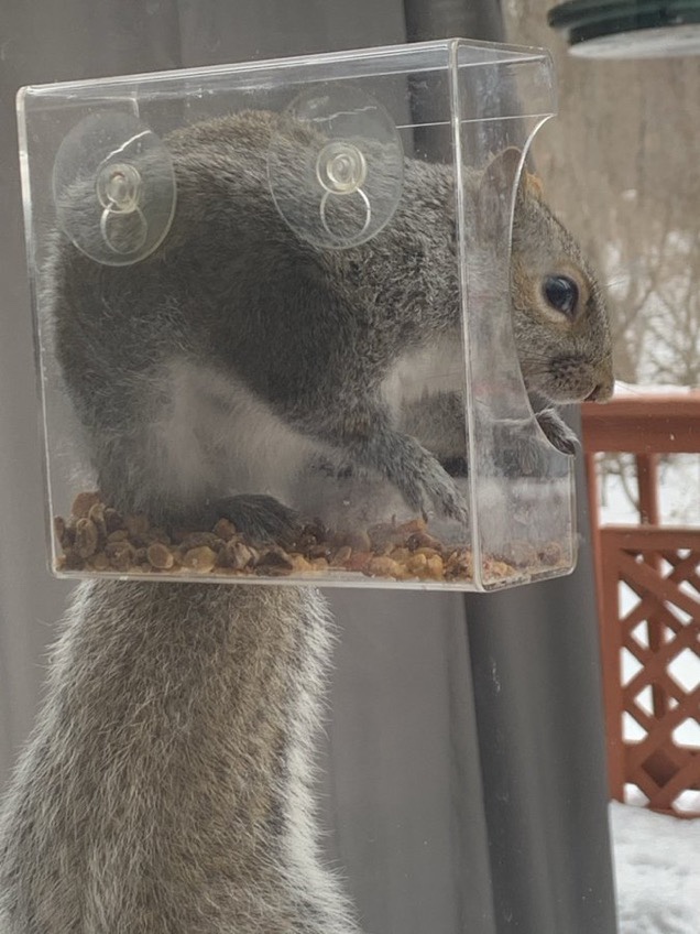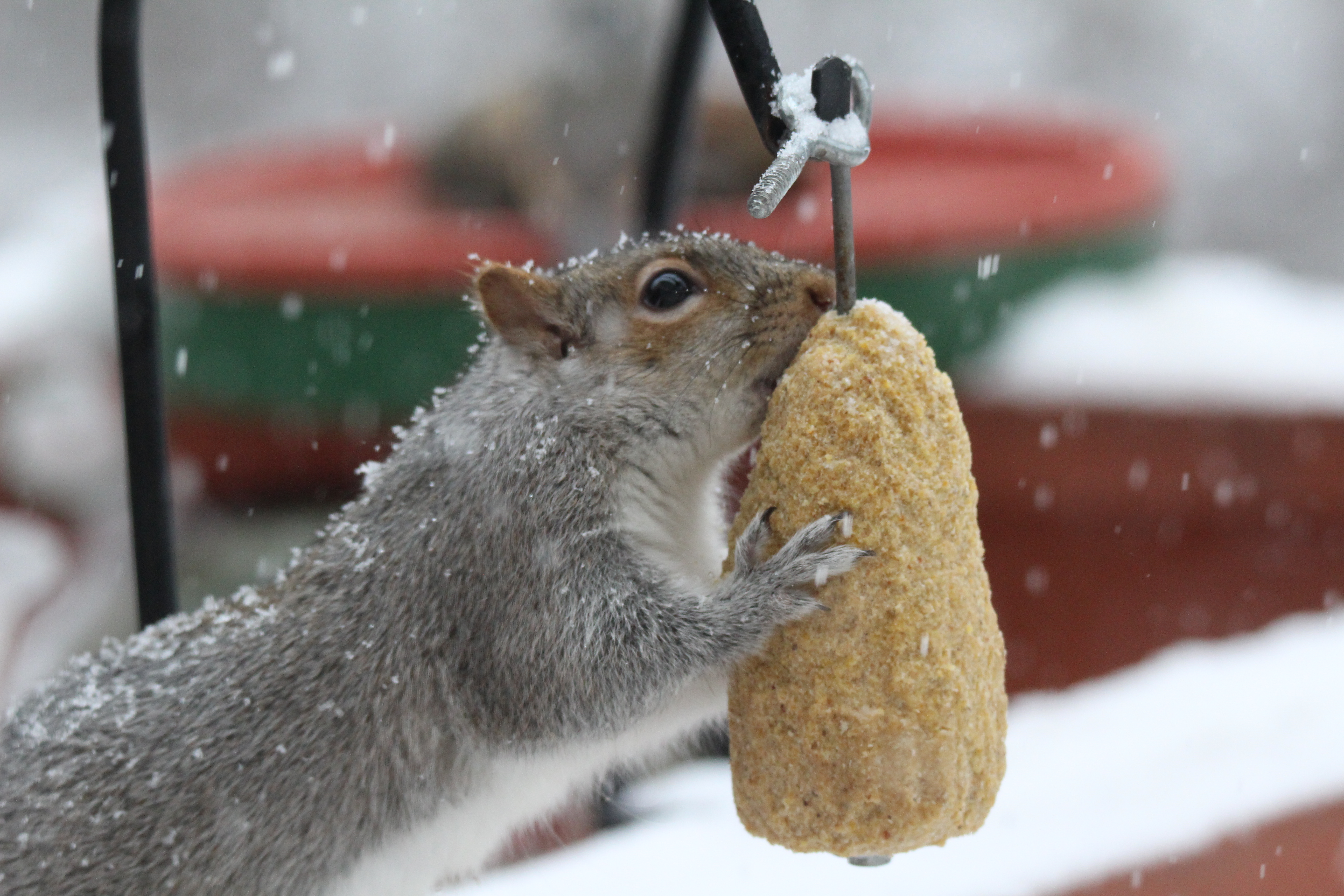 So….my relationship with squirrels is a bit rocky. My opinion of them depends on on which day you ask me. If it is snowy and cold, I will often feel sorry for them and want to take care of them. If one of them is injured, I always feel bad for it. However, if they have just stolen food for the nine billionth time, or broke another one of my “squirrel-proof” feeders, I am likely screaming at them like a maniac. To be clear, this does nothing to stop them from tormenting me LOL. I will share a couple of my best photos below, and then new ones when they happen. I will also be sharing some videos to my Squirrel Mischief Playlist on my new YouTube channel! Check it out!